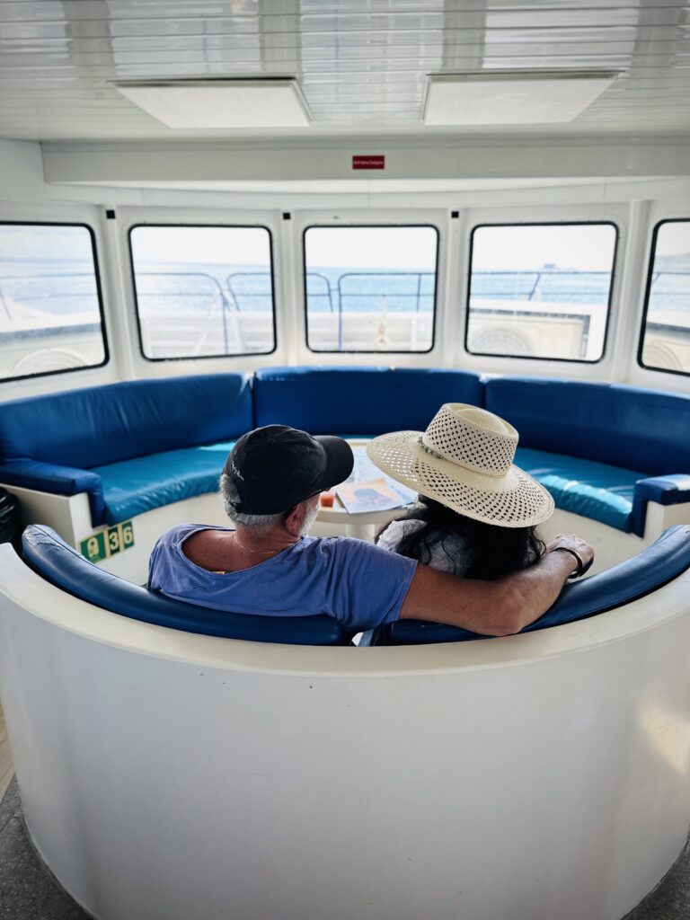 Ferry: You enjoy panoramic sea views, space to move around, and sometimes amenities like drinks or free Wi-Fi. One ferry company even offers « business/first class » cabins for added comfort. This is also where you’ll take your best photos!